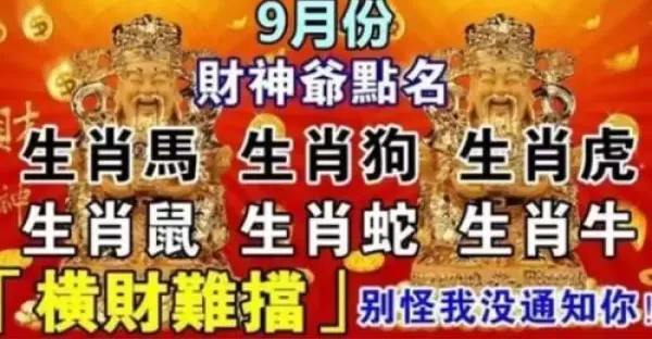 財神爺點名這六生肖,9月份橫財難擋,萬事皆順~別怪我沒通知你!