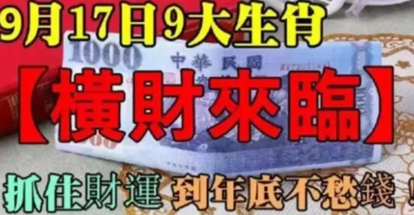 9月17日橫財來臨,九大生肖抓住財運到年底不愁錢