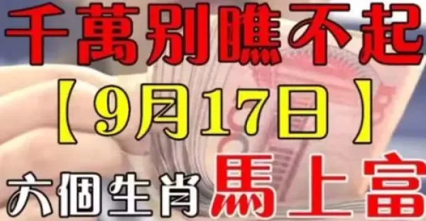 9月17日,喜提「一桶金」的六生肖!腳踩「狗屎運」!