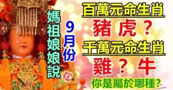 9月份:三生肖有百萬元命,三生肖有千萬元命快來接