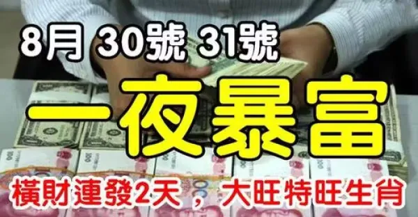 8月30號~31號橫財連發兩天,大旺特旺的生肖