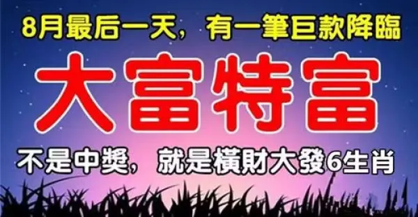 8月最後一天有一筆巨款降臨,大富特富的六生肖