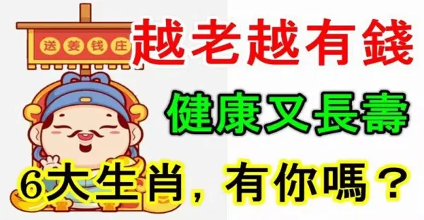 越老越有錢,健康又長壽的六生肖快來接