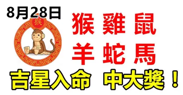 8月28日生肖運勢_猴、雞、鼠大吉,吉星入命,中大獎