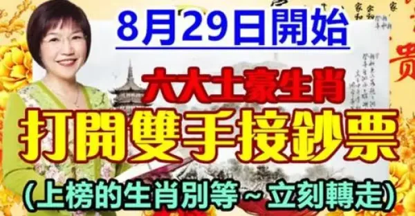 8月29日開始,六大土豪生肖打開雙手接鈔票