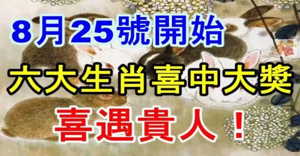 8月25號開始,六大生肖喜中大獎,喜遇貴人