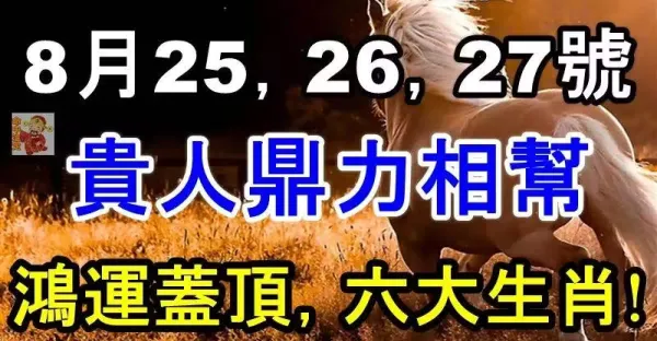 8月25,26,27號鴻運蓋頂,貴人鼎力相幫的六大生肖