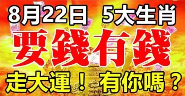 8月22日開始走大運,要錢有錢的五大生肖