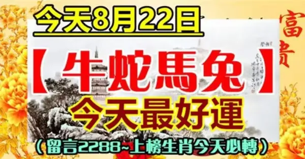 今天8月22日(牛 蛇 馬 兔)最好運