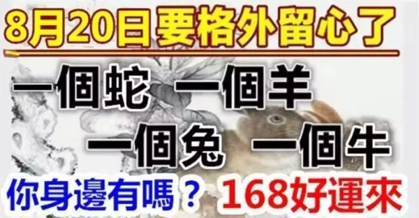8月20日要格外留心了,一個蛇,一個羊,一個兔,一個牛好運來