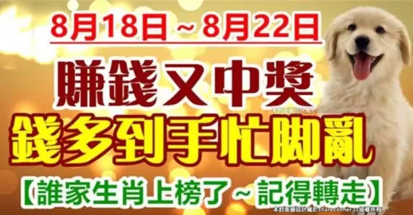 8月18日~8月22日賺錢又中獎,錢多到手忙腳亂的生肖
