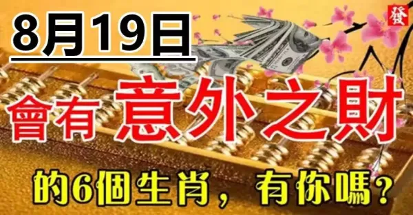 一筆意外之財進口袋,8月19日大財小財統統來的生肖