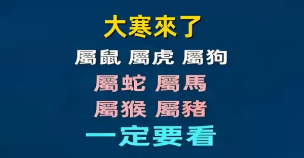 大寒來了「屬鼠 屬虎 屬狗 屬蛇 屬馬 屬猴 屬豬 」一定要看!