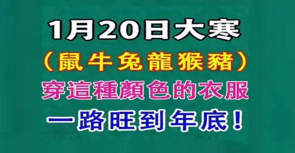 1月20日大寒,鼠牛兔龍猴豬,穿這幾種顏色的衣服開運,一路旺到年底