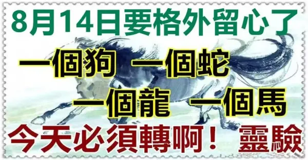 8月14日要格外留心了,一個狗,一個蛇,一個龍,一個馬必轉喲