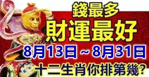 8月13日~8月31日錢最多,財運最好的十二生肖排行有你嘛