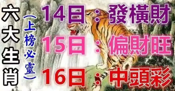 8月14日發橫財,15日偏財旺,16日中頭彩的生肖