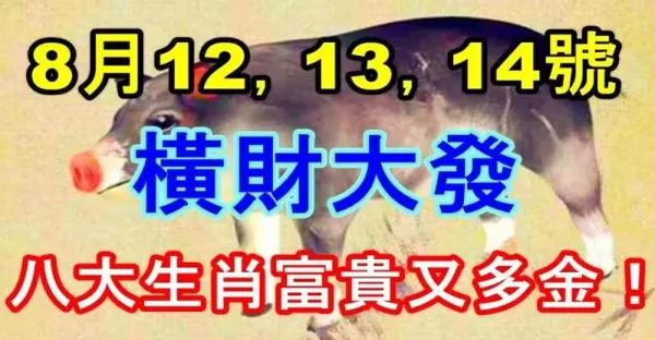 8月12,13,14號橫財大發,八大生肖富貴又多金