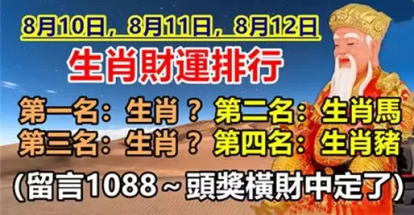 8月13,14,15號好運齊來的六個生肖,大獎不止,讓人羨慕!