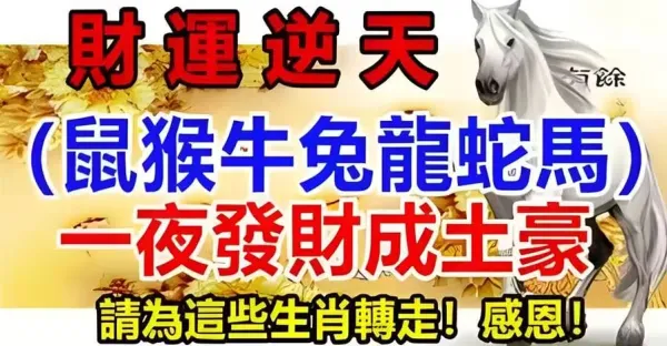 財運逆天(鼠猴牛兔龍蛇馬)一夜發財成土豪,請為這些生肖轉走