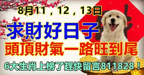 8月11日,12日,13日求財好日子,頭頂財氣一路旺到尾的生肖