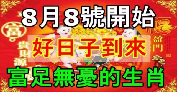好日子到來,8月8號開始八八大發,富足無憂的生肖快來接
