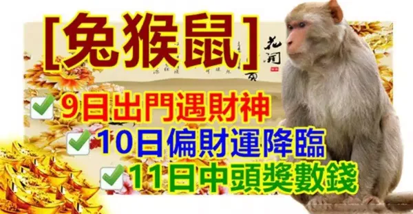8月9日出門遇財神,10日偏財運降臨,11日中頭獎數錢的生肖
