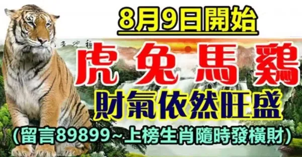 8月9日開始財氣依然旺盛(虎 兔 馬 雞)隨時發橫財
