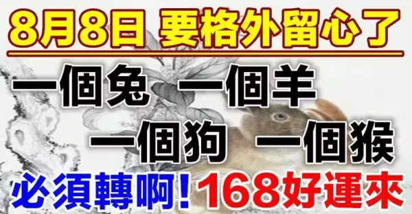 8月8日要格外留心了,一個兔,一個羊,一個狗,一個猴必須轉啊