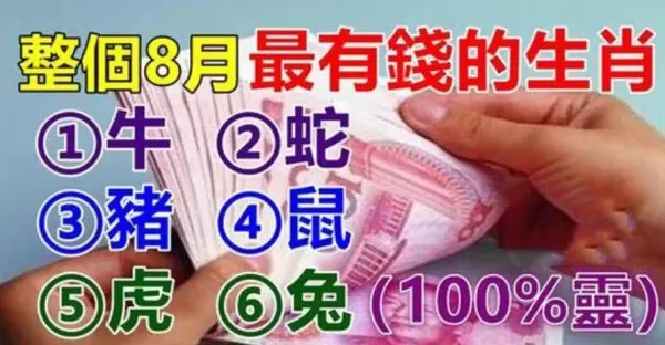 8月8號到月底都橫財不斷,六大生肖一路發