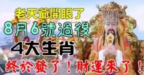 老天爺開眼了,8月6號過後財運來了,四大生肖終於發啦