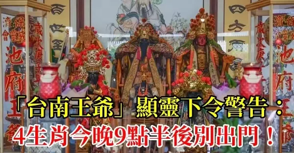 「臺南王爺」顯靈下令警告:「4生肖中元節9點半後別出門!」信眾嚇壞了,千萬提醒親友!