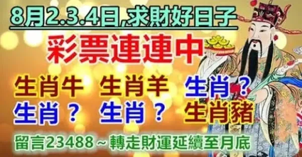 8月3.4.5日求財好日子,彩票連連中的生肖