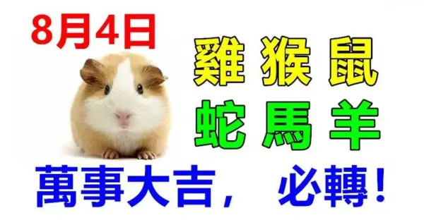 8月4日生肖運勢_雞、猴、鼠大吉