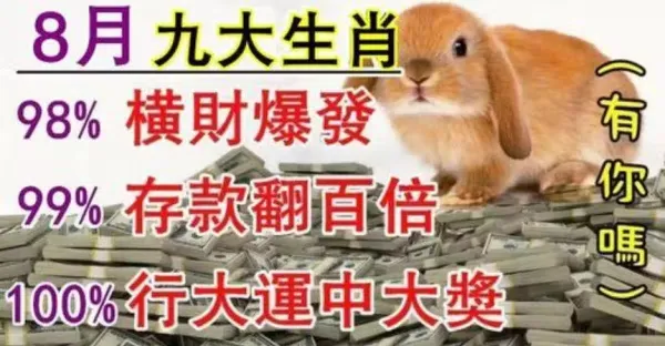 8月份橫財爆發,行大運中大獎,存款翻百倍,必大富特富的生肖