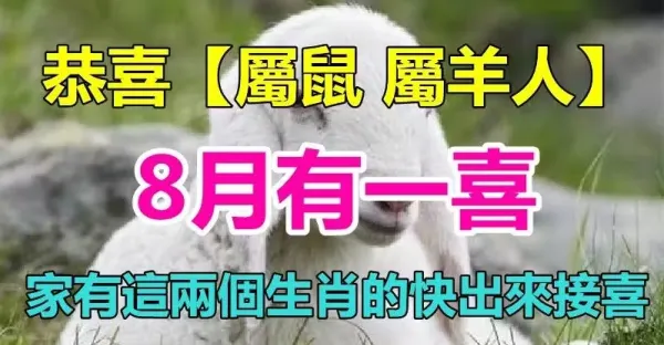 8月有一喜!恭喜【屬鼠 屬羊人】好運馬上來 「家有這兩個生肖的人」快出來接喜