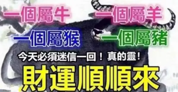 一個屬牛,一個屬羊,一個屬猴,一個屬豬,今天財運順順來