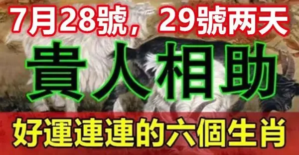 7月28號,29號:六個生肖貴人相助,好運連連