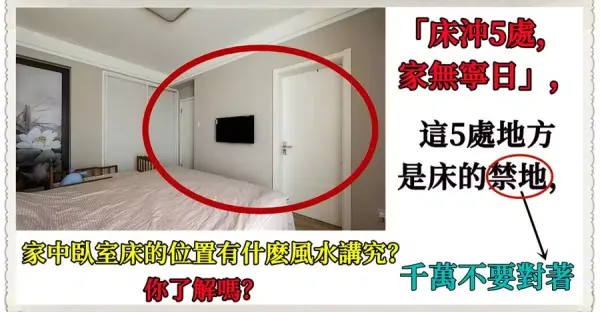 「床沖5處,家無寧日」,這5處地方是床的禁地,千萬不要正對著