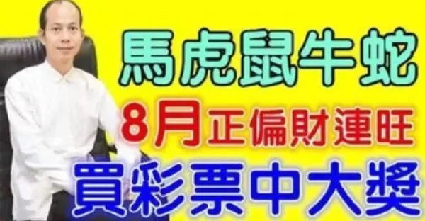 8月正偏財連旺的生肖,買彩票中大獎,年底行大運