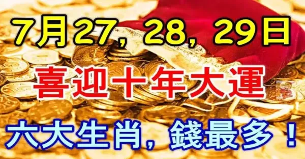 7月27,28,29日喜迎十年大運,六大生肖錢最多