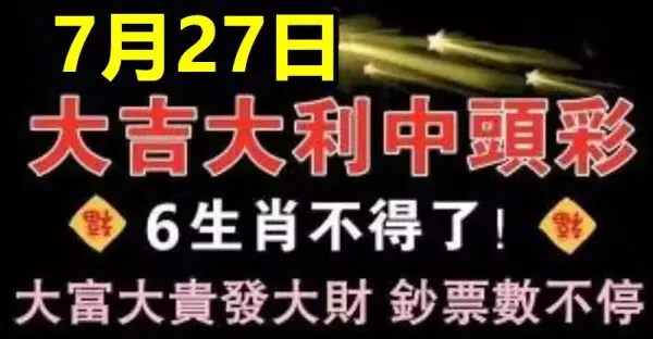 7月27號過後有一筆橫財降臨,中一注頭獎的生肖