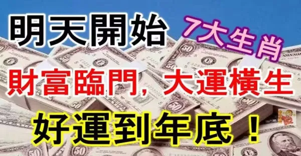 明天開始財富臨門,大運橫生,好運到年底的七大生肖