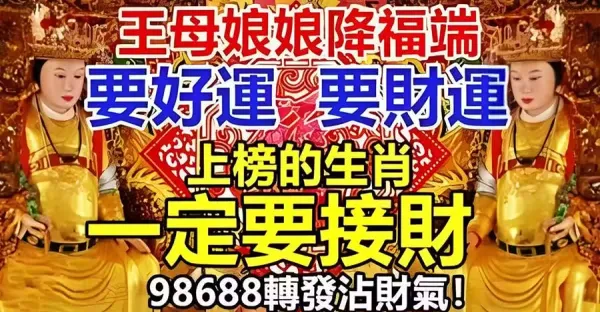 王母娘娘降福端,要好運要財運,上榜的生肖要接財啦!