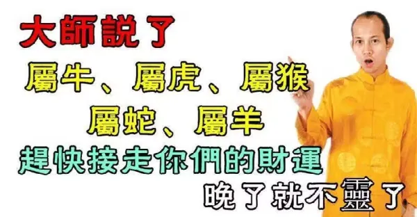 大師說了:【屬牛 虎 猴 蛇 羊】趕快接走你們的財運,晚了就不靈了!