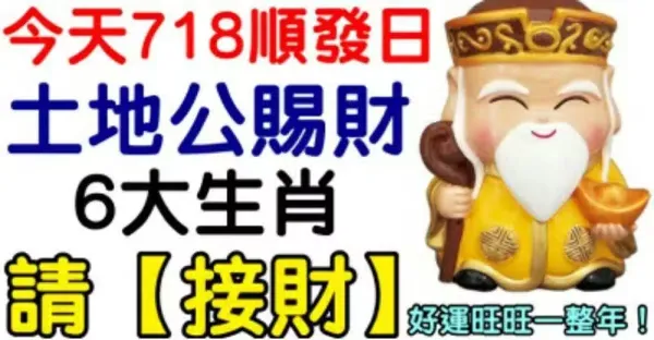 今天7月18順發日,土地公賜財,六大生肖快來接財,好運旺旺一整年