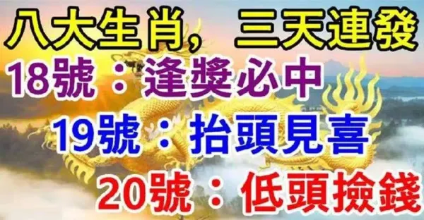 八大生肖三天連發:7月18號逢獎必中,19號抬頭見喜,20號低頭撿錢