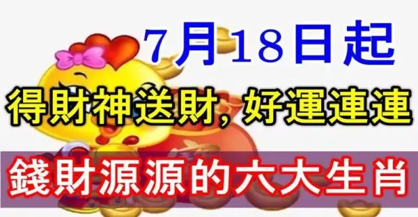 7月18日起得財神送財,好運連連,錢財源源的六大生肖