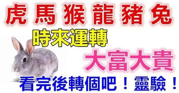 (虎馬猴龍豬兔)今年時來運轉,大富大貴,看完之後轉吧