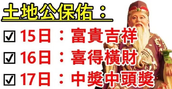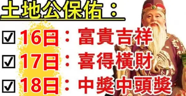 土地公保佑八大生肖:16日富貴吉祥,17日喜得橫財,18日中獎中頭獎!
